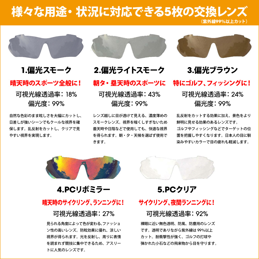 交換レンズ5枚付 RS-S111 レボリューションスポーツ 度付き対応スポーツサングラス 偏光レンズ 伊達メガネ 眼鏡