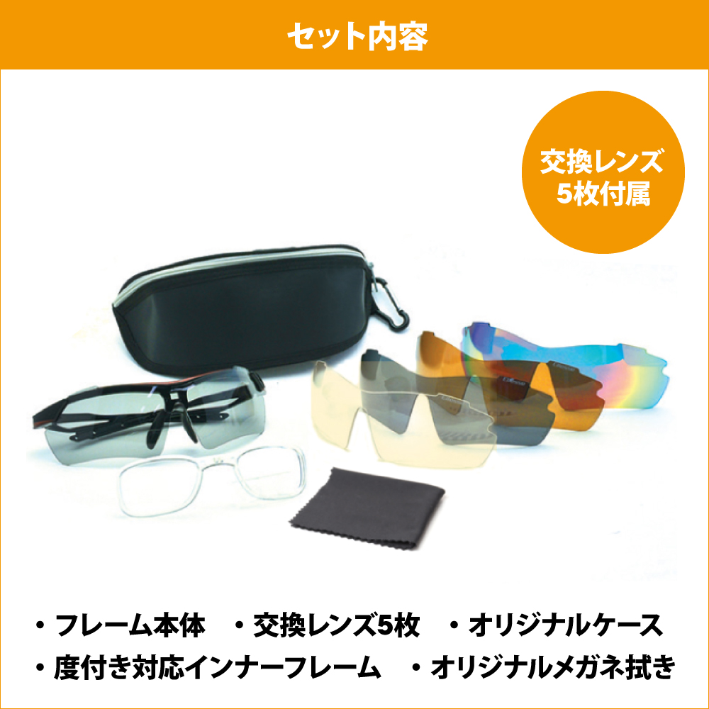 交換レンズ5枚、度付き対応インナーフレーム、クロス、ケース