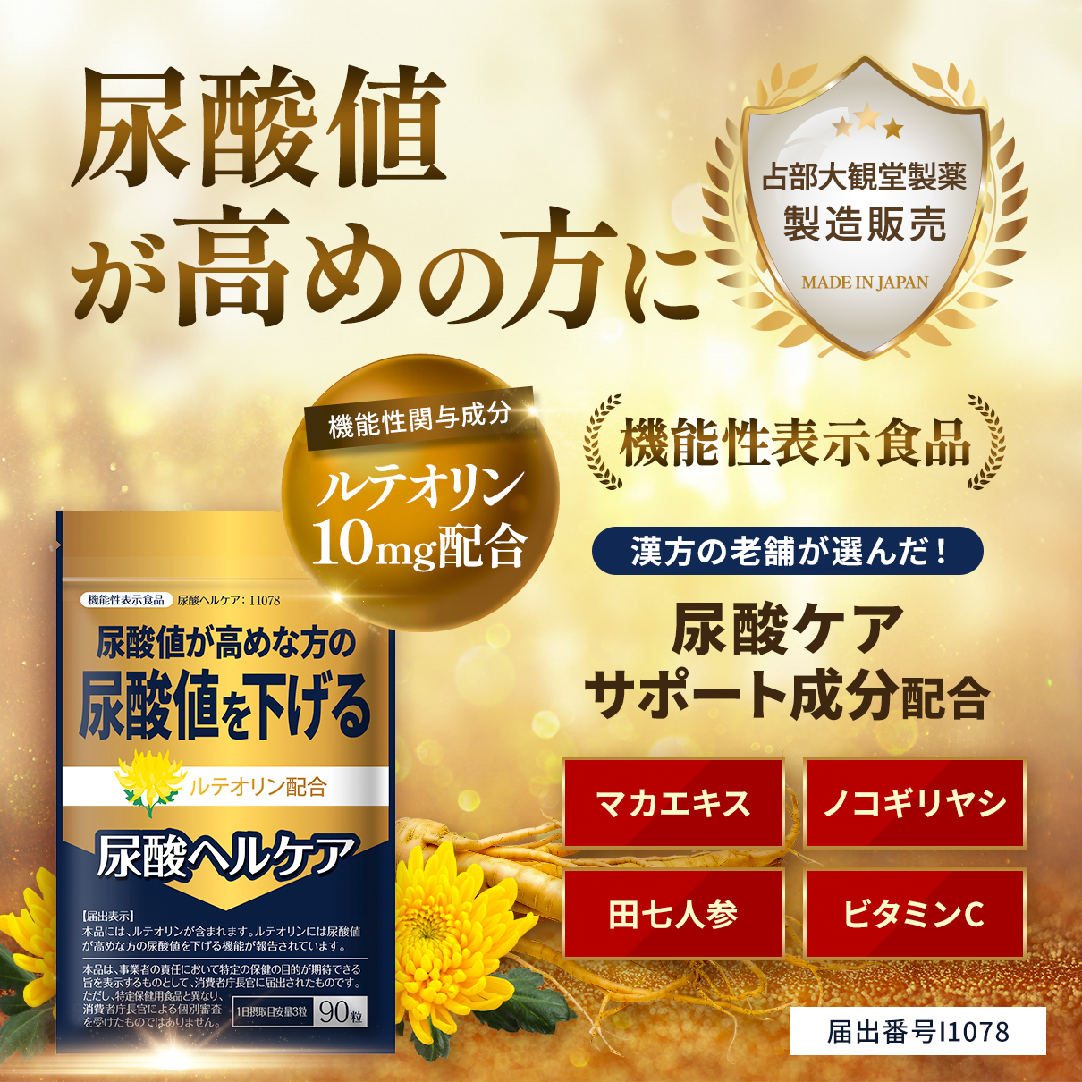 【届け出表示】I1078 本品には、ルテオリンが含まれます。ルテオリンには尿酸値が高めな方の尿酸値を下げる昨日が報告されています。