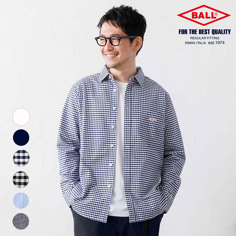 シャツ メンズ オックス レギュラーカラー ギンガムチェック 綿100% ロゴ オフィス カジュアル BALL 33661