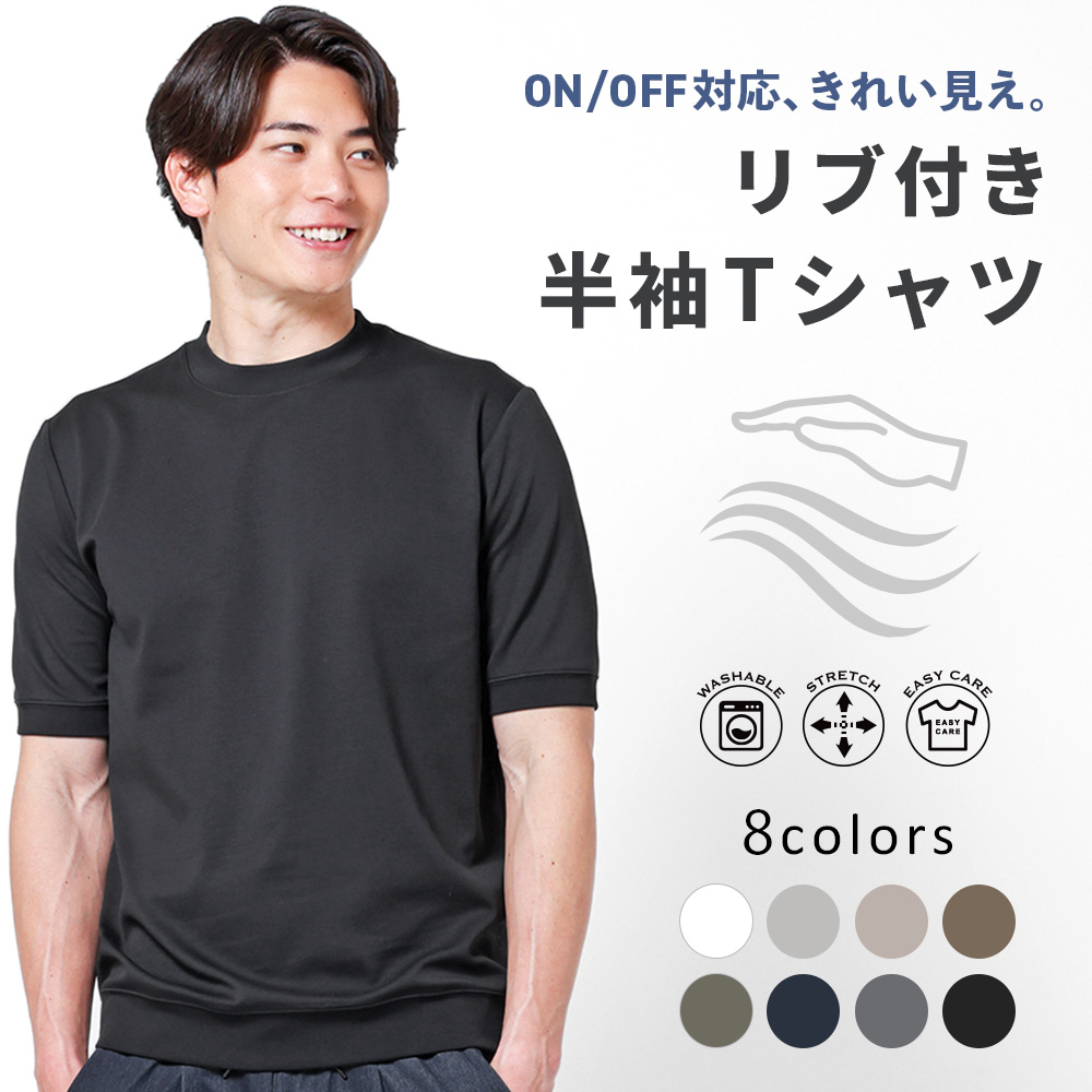 半袖 Tシャツ メンズ スムース クルーネック リブ付き 上品 ストレッチ 軽い 春 夏 涼しい シンプル きれいめ 通勤 ビジネス 洗える アーバンスクエア 55308