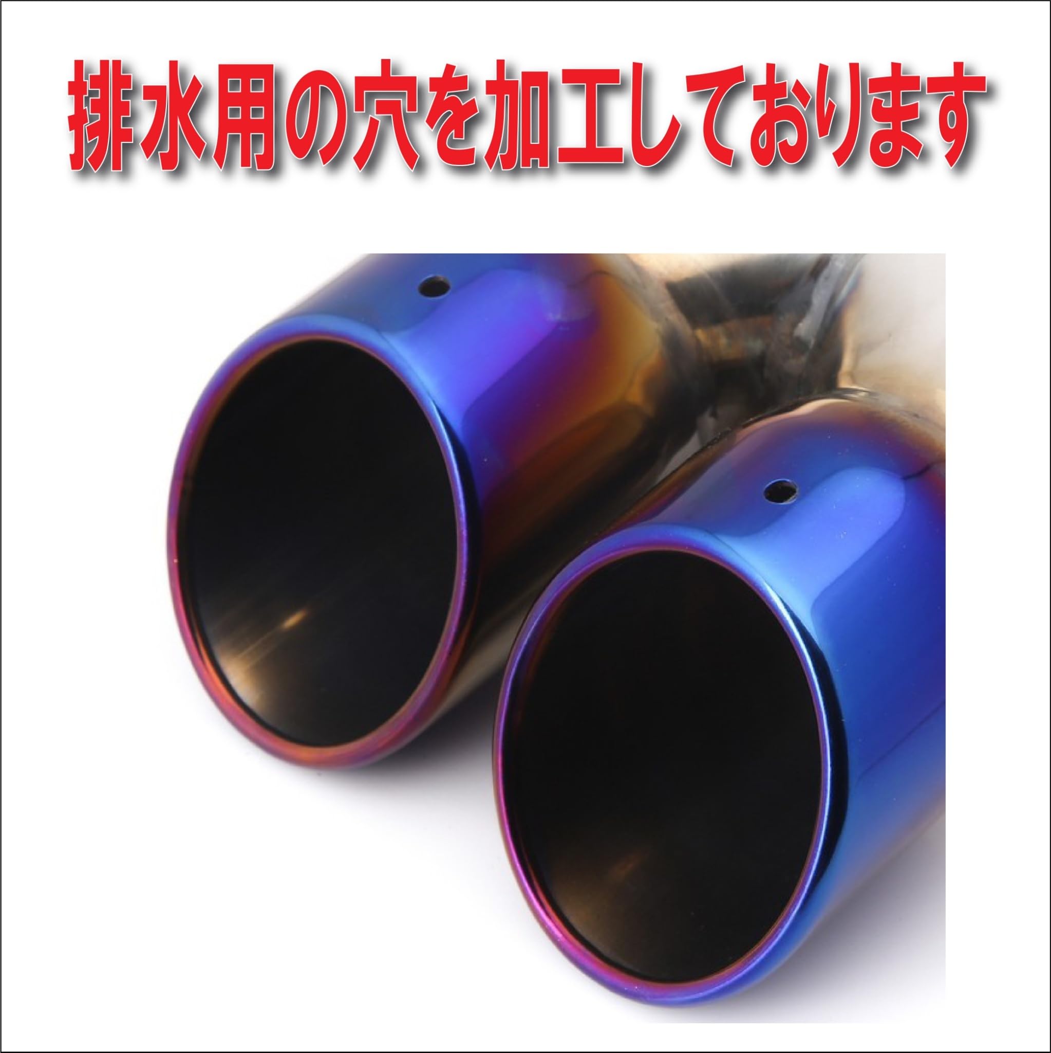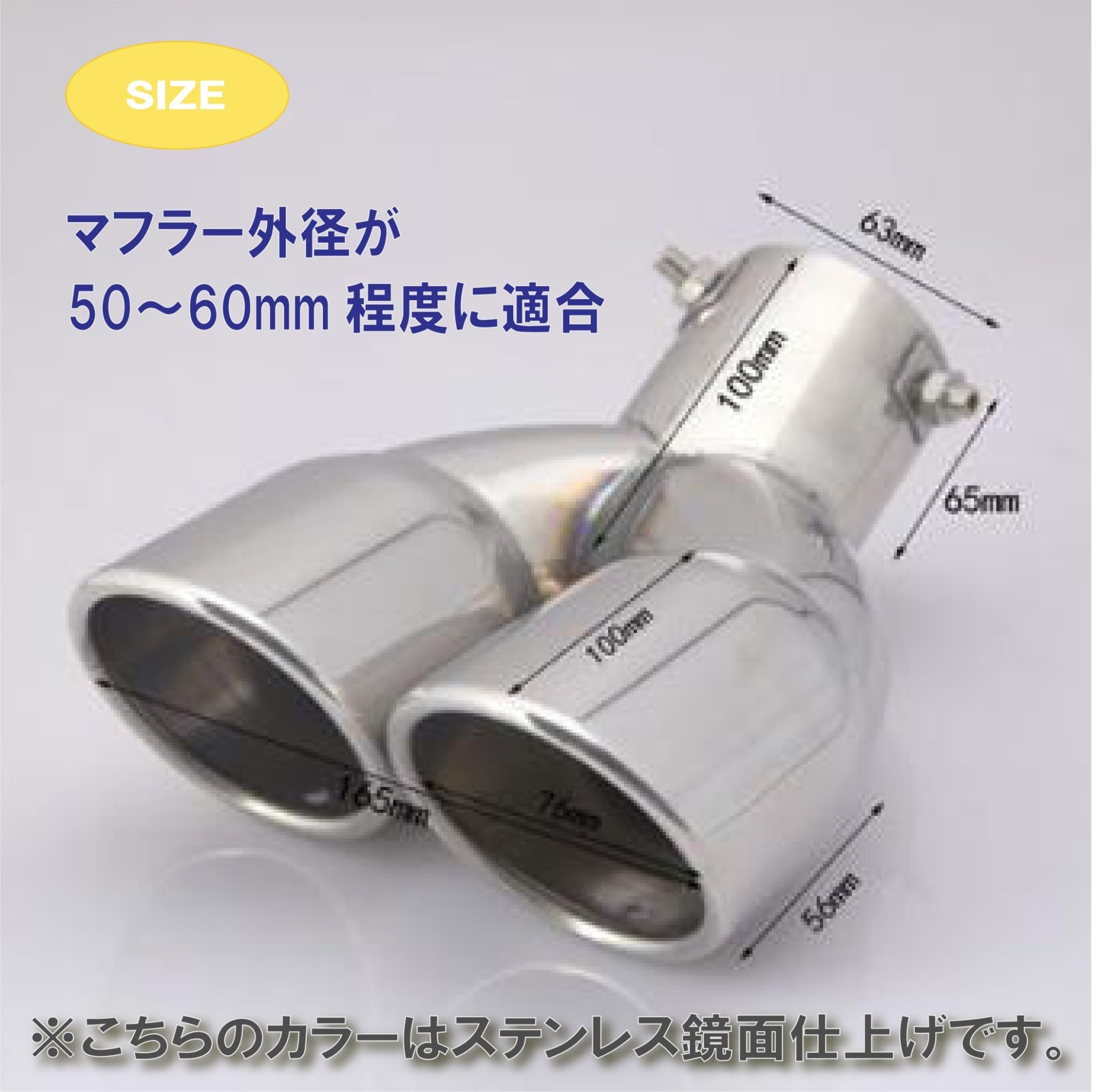 | 【商品内容】・本体 1個(排水加工済)【材質】 ・ステンレス製【サイズ】・マフラー差し込み部の外径が63mm/76mmの2種類をご用意しております。(内径は約60mm/73mmとなります。3本のボルトで押して固定するタイプであり、63mmタイプであればマフラー径50~60mm、76mmタイプであればマフラー径63~73mm、−10mm程度は調整が可能です)・その他の寸法は画像にて記載しておりますのでご確認下さい【カラー】・ブラックメタリック/ステンレス鏡面仕上げ/ブルー の3種類をご用意しております【対応車種】 ・マフラー差し込み部の内径が約60mm/73mmになりますので、サイズが合えば国外、国内車問わず様々な車種に取り付けが可能で御座います。 (マフラー周りの部分に干渉する恐れがありますので、詳細の寸法をご確認の上ご購入下さい)・ |