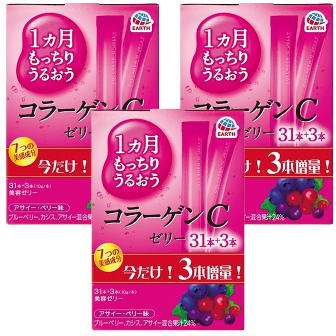 1カ月もっちりうるおうコラーゲンCゼリー アサイー・ベリー味 10g× 34本入(3本増量)×3箱セット