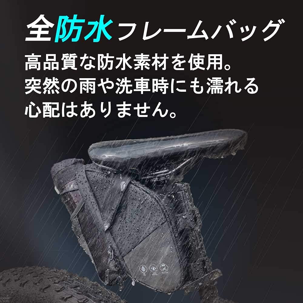 | ?【大容量収納ポケット】スマホや財布、鍵や小物、自転車修理キットなどを持ち運びたいが、「リュックを背負うほどでもない」「ショルダーバッグだと走行中に煩わしい」というあなたにピッタリなバッグです。 大容量収納ポケットを搭載し、フレーム下のスペースを有効活用できます。 何も持たずに荷物と一緒に自転車で走行したいというあなたの願望を叶えます |