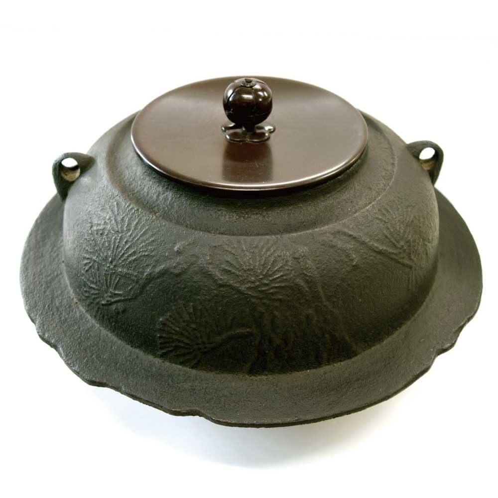 茶道具 置炉釜 老松紋羽付 釜鐶付 (釜カン付)
