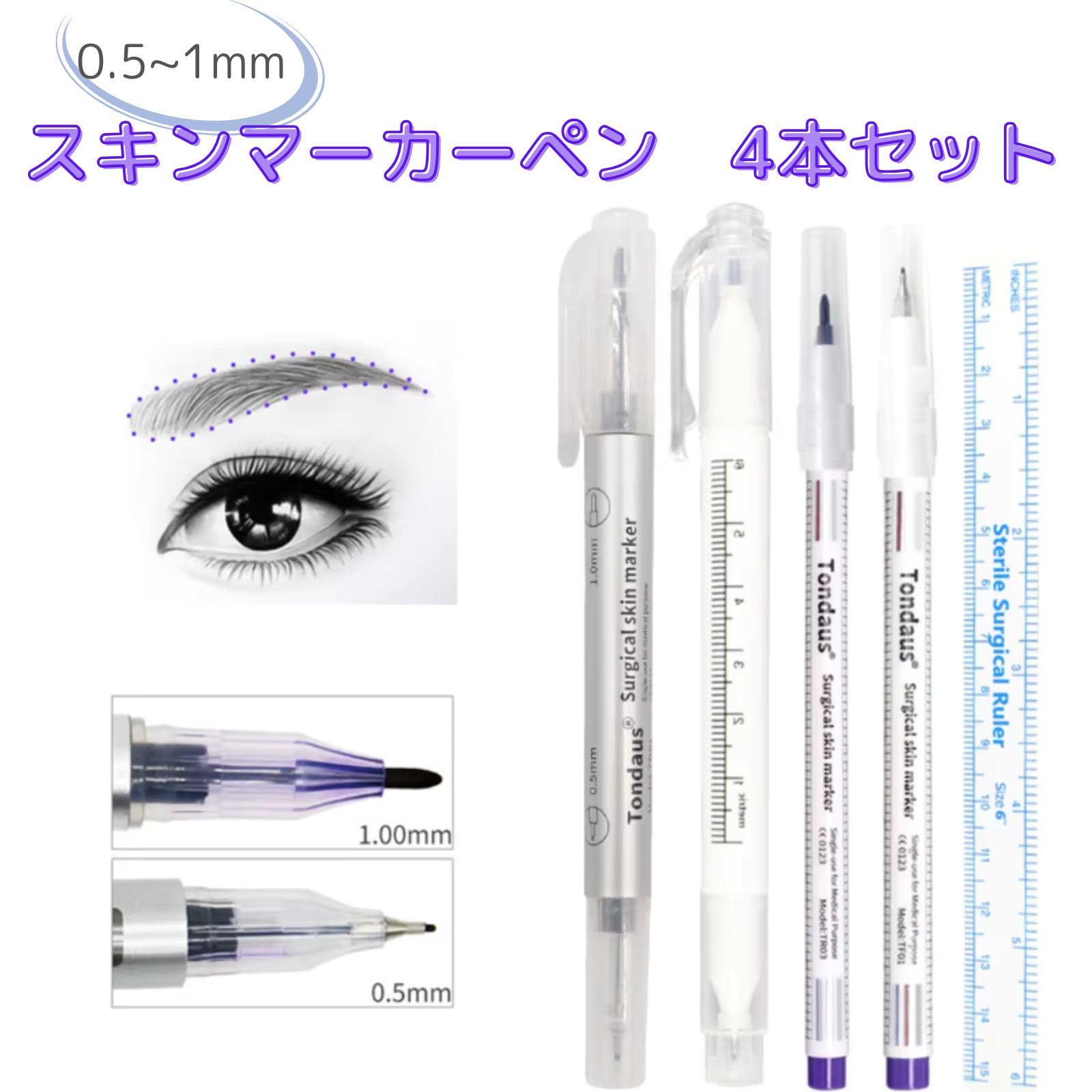 | 【タトゥー眉毛外科スキンマーカーペン】タトゥー眉毛外科スキンマーカーペンの4本セット。 |