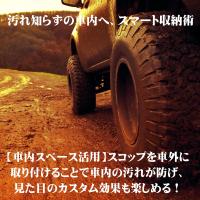 【スタック対策】突然のスタック時にもスコップをすぐ取り出せます。固定したままでもスムーズに開閉でき、汚れを気にせず使える設計です。 |