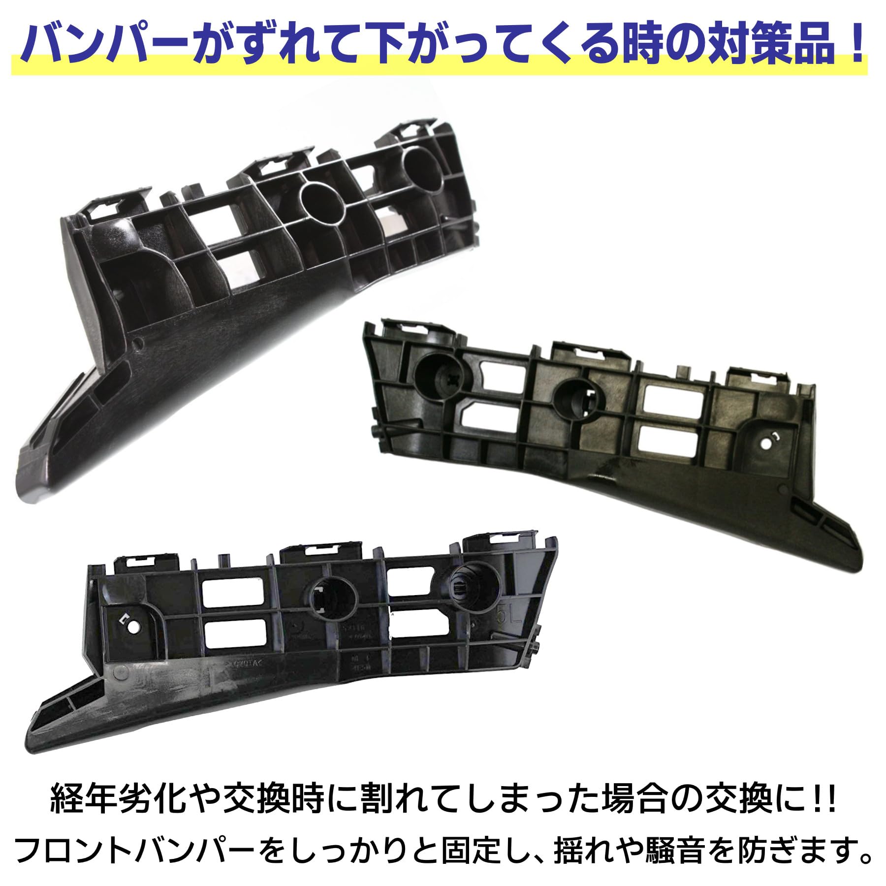 | ◆バンパーがずれて下がってくる時の対策品!経年劣化や交換時に割れてしまった場合の交換に!!フロントバンパーをしっかりと固定し、揺れや騒音を防ぎます。 |