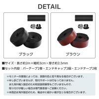 | ロードバイク用のバーテープセット。セット内容は、バーテープ2巻、エンドキャップ2個、エンドテープ2枚です。カラーはブラックとブラウンからお選できます。 |
