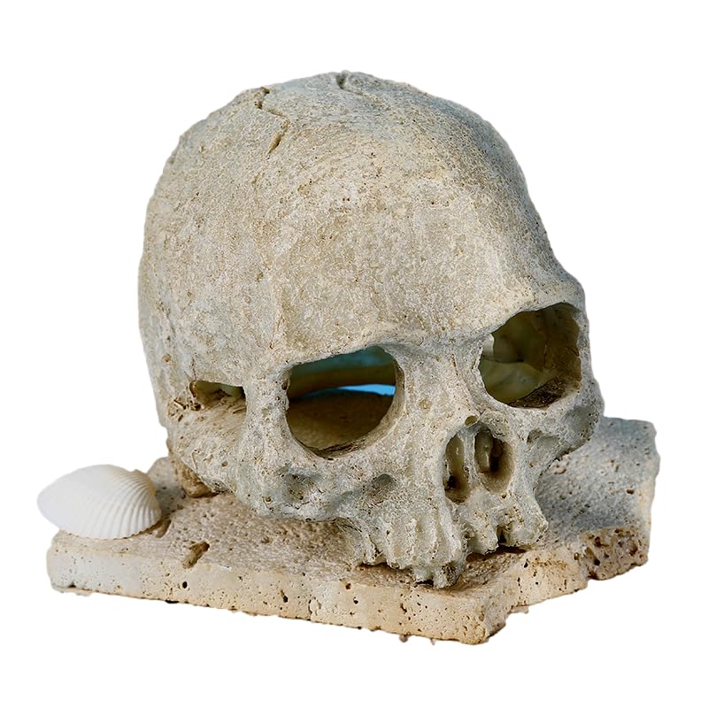 リアルなガイコツをモチーフとした爬虫類の隠れ家、オブジェです。 後頭部も開口部分が設けてあり、程よく光が入り出入りもしやすく爬虫類の生活に欠かせない、実用的なデザインとなっています。 |