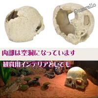 トカゲやヤモリ、ヘビ等の爬虫類のシェルターとしてご利用ください。頭蓋骨の後頭部や眼底部の穴を通って出入りするお気に入りの爬虫類が独特のインテリア世界観をかもし出します。 |