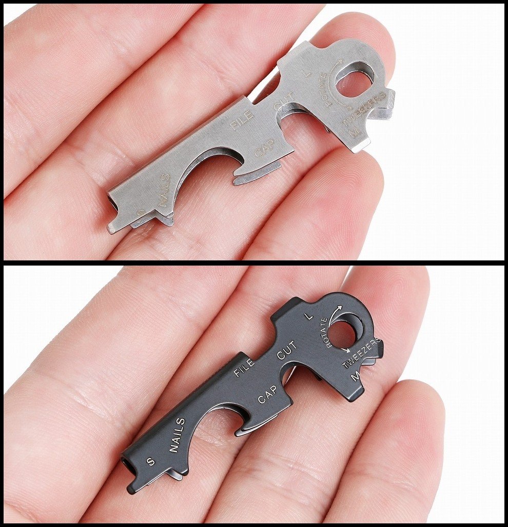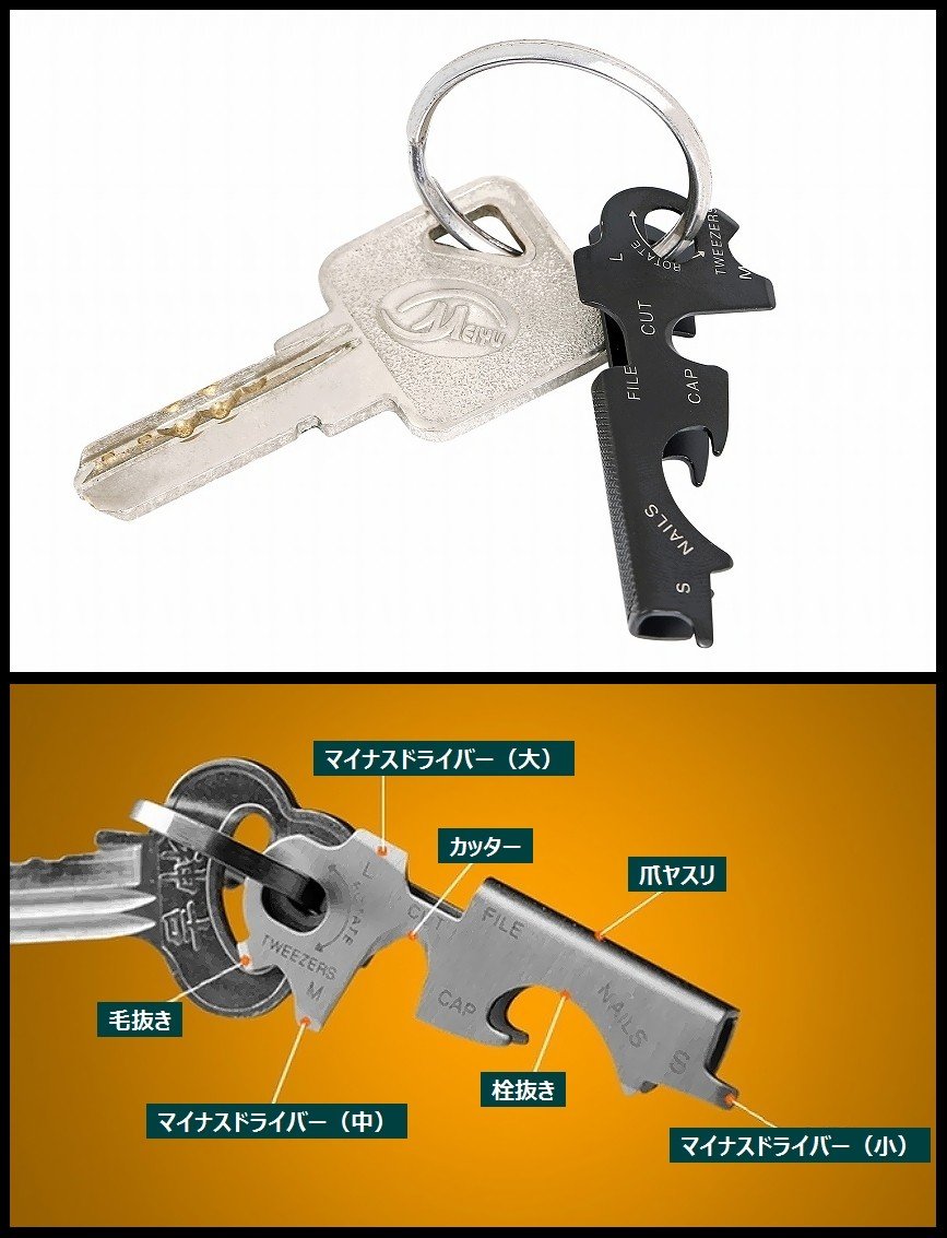 r_planning キーカバー キーホルダー マルチ ツール 多機能 シルバー ブラック 2個セット
