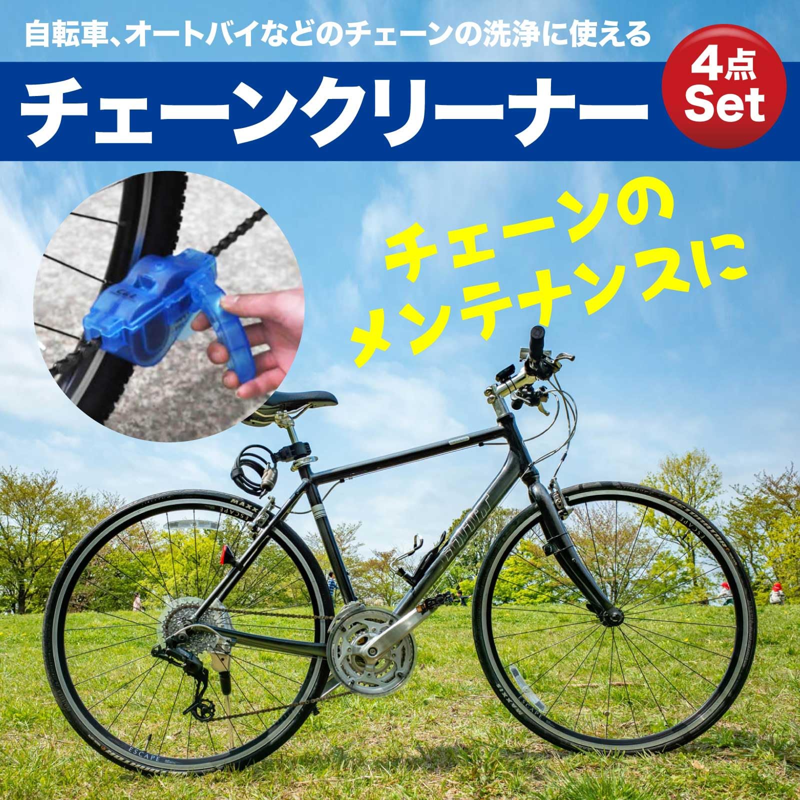 | ?【チェーンのメンテナンスに】自転車、オートバイなどのチェーンを洗浄するためのチェーン洗浄器とブラシの4点セットになります。セット内容:三面チェーンブラシ+ブラシ×2+チェーン洗浄器。 |