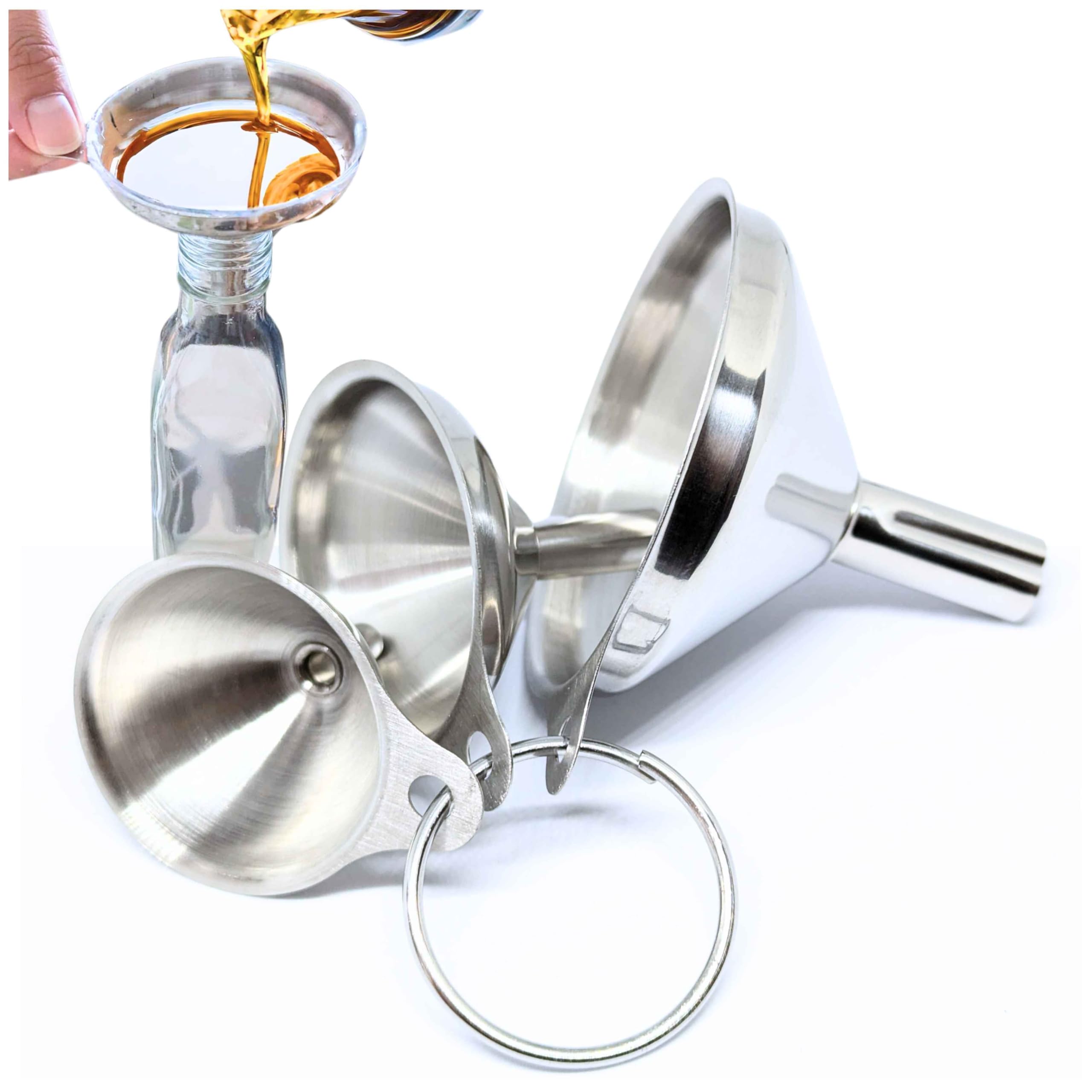高品質の漏斗セットをご紹介します。ステンレス鋼とシリコンの2種類の素材から選べ、使いやすさと便利さを追求したデザインです。先細りの形状により、液体を正確にこぼさずに注ぐことができ、油の移し替えやボトルの充填、乾燥した物の管理など、さまざまな用途に対応します。両素材ともに耐久性が高く、長くお使いいただけます。コンパクトなサイズで、収納も簡単。さらに、お手入れも簡単です。