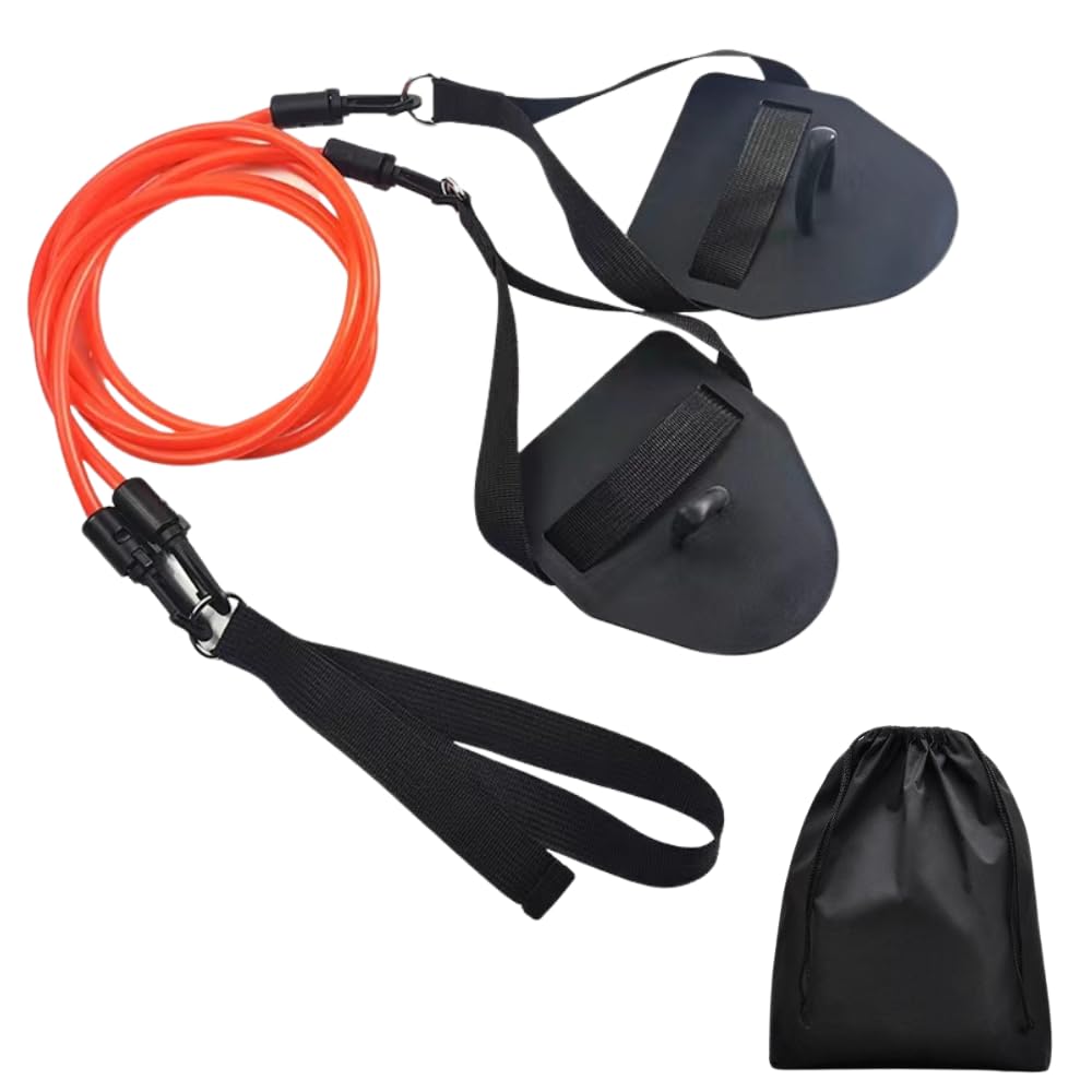 【本格的な水泳トレーニング】パドル付きチューブが泳ぎに近い動きを再現し、実践に必要な筋肉をしっかり鍛えられます。 |
