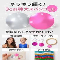 PVC製スパンコールは、キラキラと美しく反射し、服飾アレンジに最適。30mmの大きさと取付穴付きで装着も簡単。ステージ衣装などにもおすすめです。 |