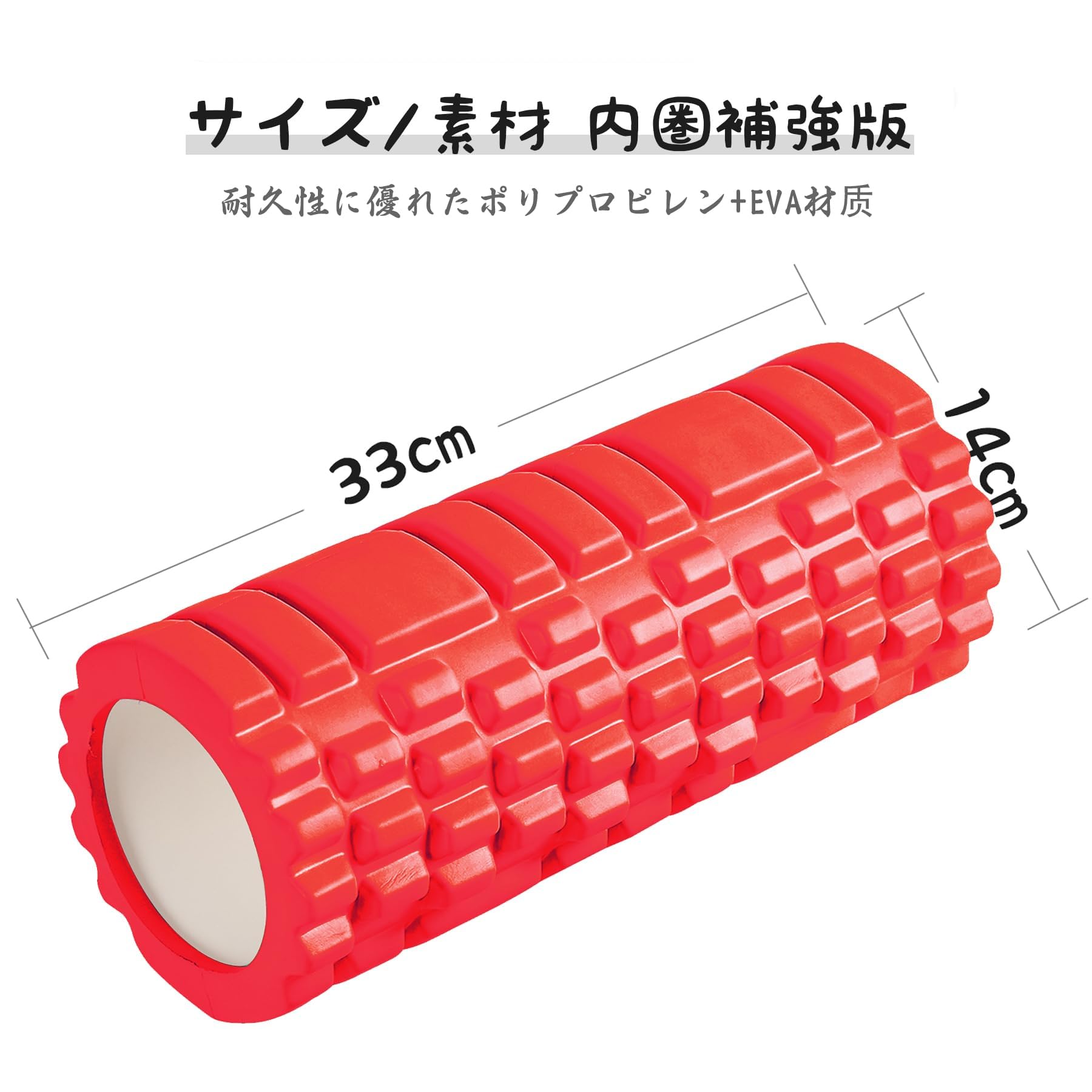 | 【耐久性アップ】新世代フォームローラーは表面には耐久性、防水性、弾力性に優れたEVA素材を採用し、突起がついており、指圧マッサージの様な感覚を与えるフォームローラーです。ストレッチポール中芯部の素材ははPVCではなく、軽量で超硬質のPP素材で、従来の製品よりも耐久性があり、変形しにくく、荷重が2倍になり、最大荷重が500kgです。 |
