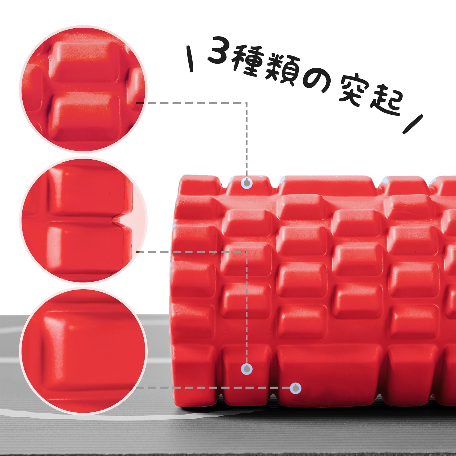 | 【初心者に優しい】このフォームローラーは手のひらのような平らな形状、指のようなチューブ形状、指先のような突起した形状の3つの凹凸形状を備えています。使いやすく、初心者からコーチまで誰でも楽しめます。本を読みながら、テレビを見ながら、1日5〜10分程度、気軽にストレッチができます。 |