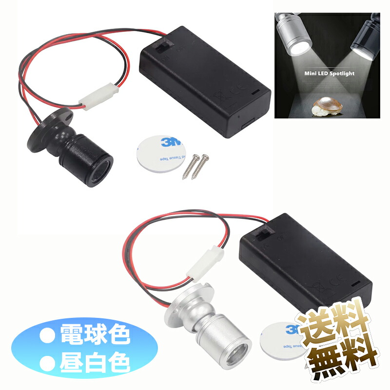 ショーケース内のフィギュアや雑貨などを照らすスポット風ライト 乾電池式なので場所を問いません 充電式電池にも対応 無段階に照射角度変更可能です 両面テープ接着・タッピンネジ両対応 明るさ 1W相当 ON/OFFスイッチ付き