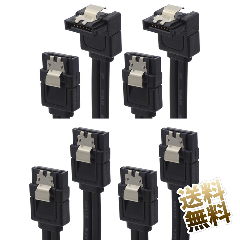 一般的な両端ストレートコネクタのSATAケーブル2本と片側L字型コネクタ-片側ストレートコネクタのSATAケーブル2本の4本セットです。