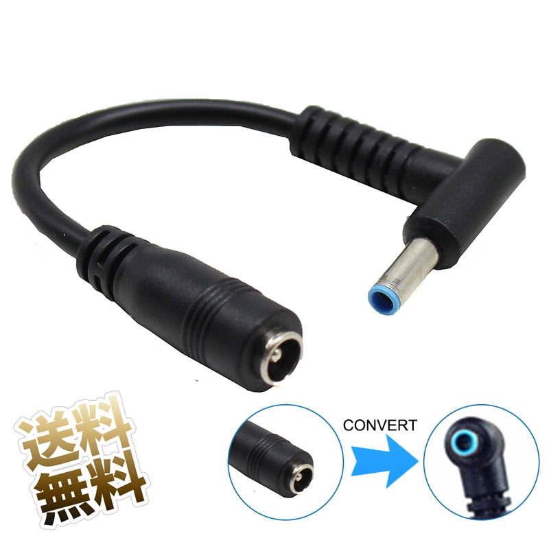 標準DCプラグ外径5.5mm × 内径2.1mmを、HP製 ノートパソコンのスリムタイプ細径プラグ外径 4.5mm × 内径 3.0mm センターピン有 に変換するケーブルです