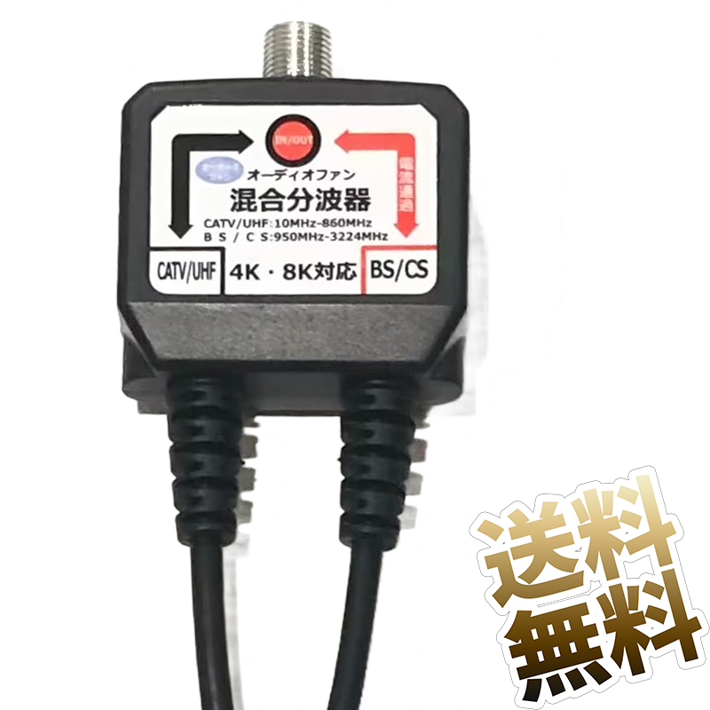 2K(地デジ)・4K・8K 放送対応 分波器 ケーブル付き。アンテナの分波だけでなく、混合も可能です