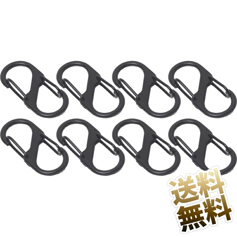【8個セット】小型カラビナ 32mm ×15mm S字 フック カラビナ アウトドア キャンプ ハイキング スポーツ 多機能 キーホルダー ブラック