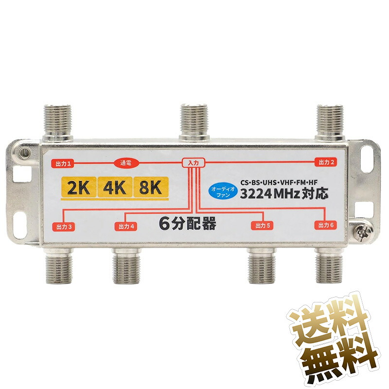●製品内容 4K8K対応 6分配器 ×1点 取り付けネジ ボタンヘッド タッピングビス 25mm ×2 ●保証期間 お届け日より1ヶ月
