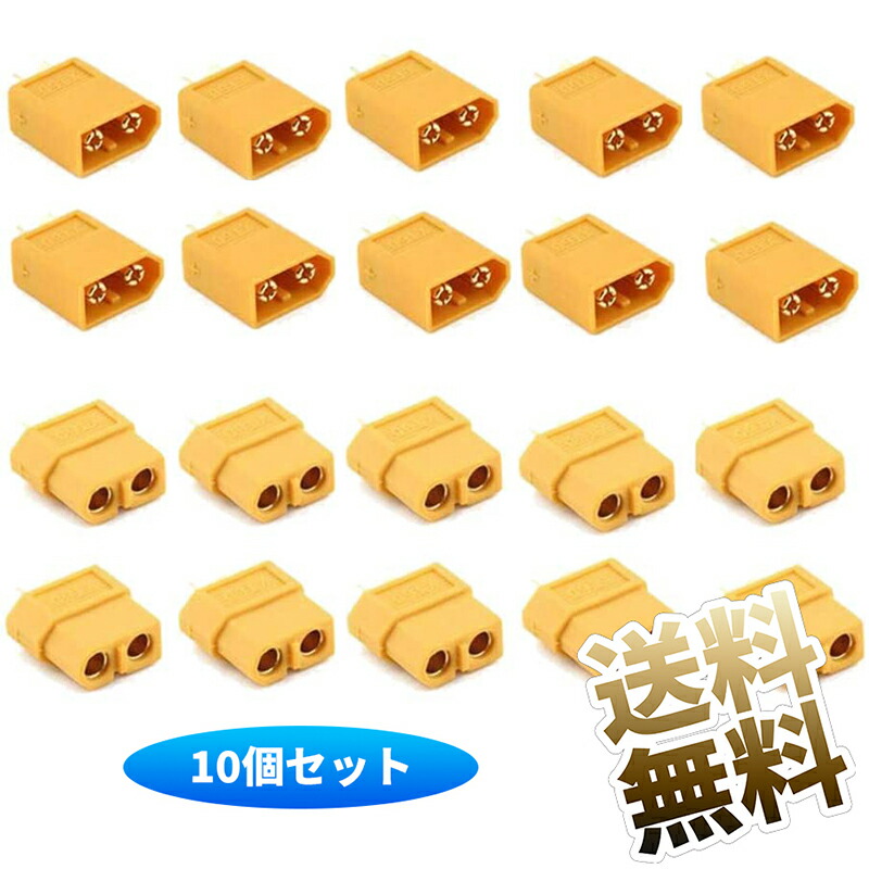 [互換品]バレットコネクタ XT60 10個 イエロー オス メス 端子タイプをお選びください