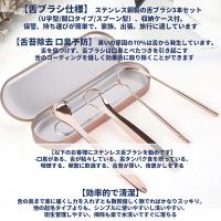 ステンレス鋼製の舌ブラシ3本セット(U字型/開口タイプ/スプーン型)収納ケース付