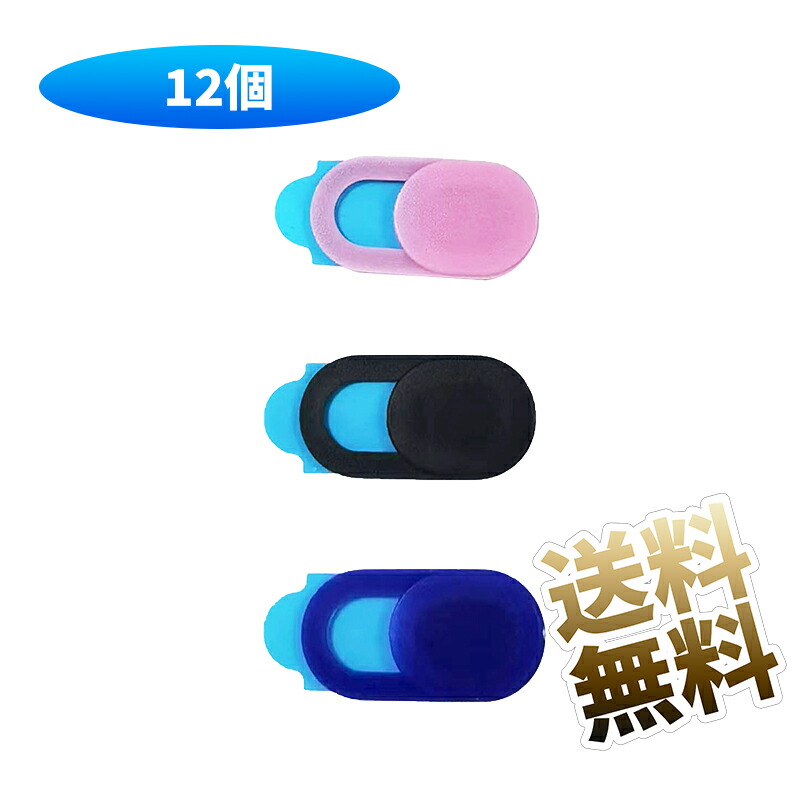 【12個】 ウェブカメラカバー カメラセキュリティシール スライド式 18mm × 9mm ブラック / ダークブルー / ピンク