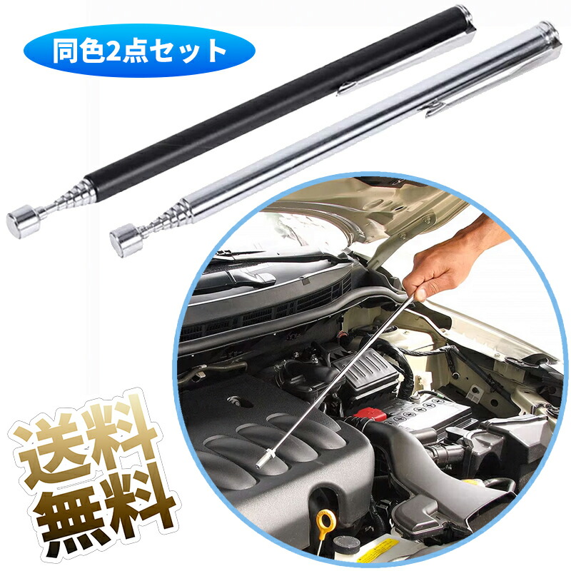 【2個】マグネット ツール ペン型磁石棒 携帯便利 吸着式 吸着力900g 伸縮式 長さ12.5〜65cm 調整可能 ブラック / シルバー