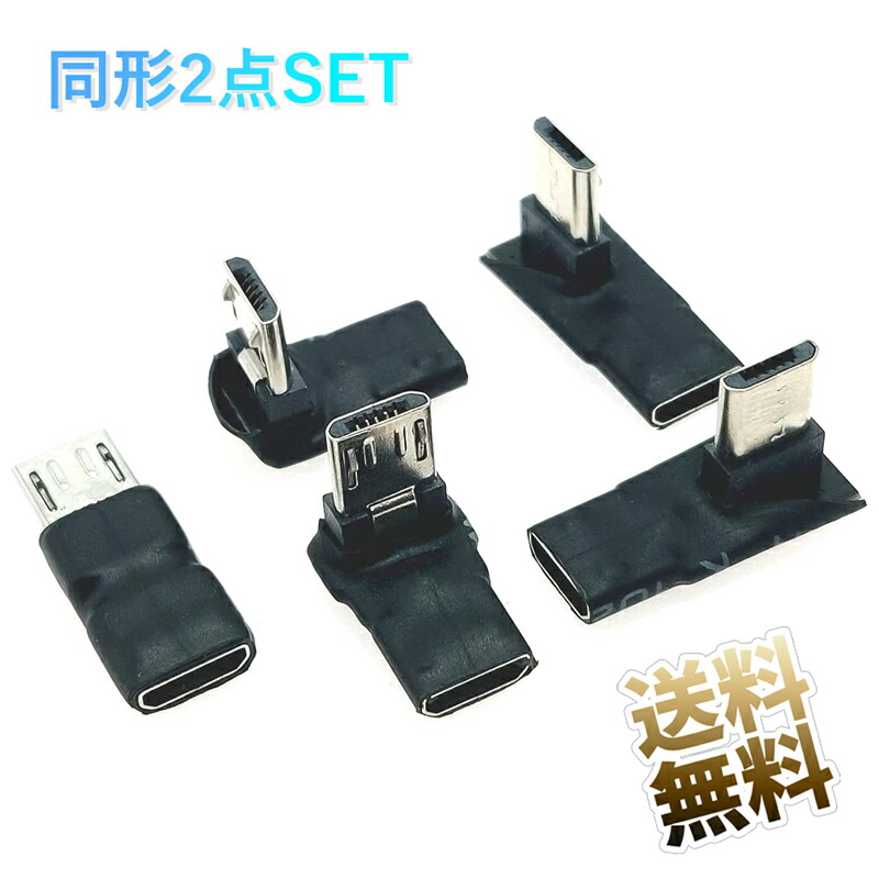 【ストレート】【L字】microUSB アダプター 2点セット 方向変換 中継 90° 変換 薄型 USB2.0 高速データ転送 480Mbps 同形