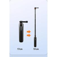 【2イン1デザイン】折りたたみ可能な脚を内蔵した自撮り棒と三脚の完璧な組み合わせです。 広げると、どんな水平面でも支えることができます。ビデオ録画用のデスクトップ三脚として使用することができます。