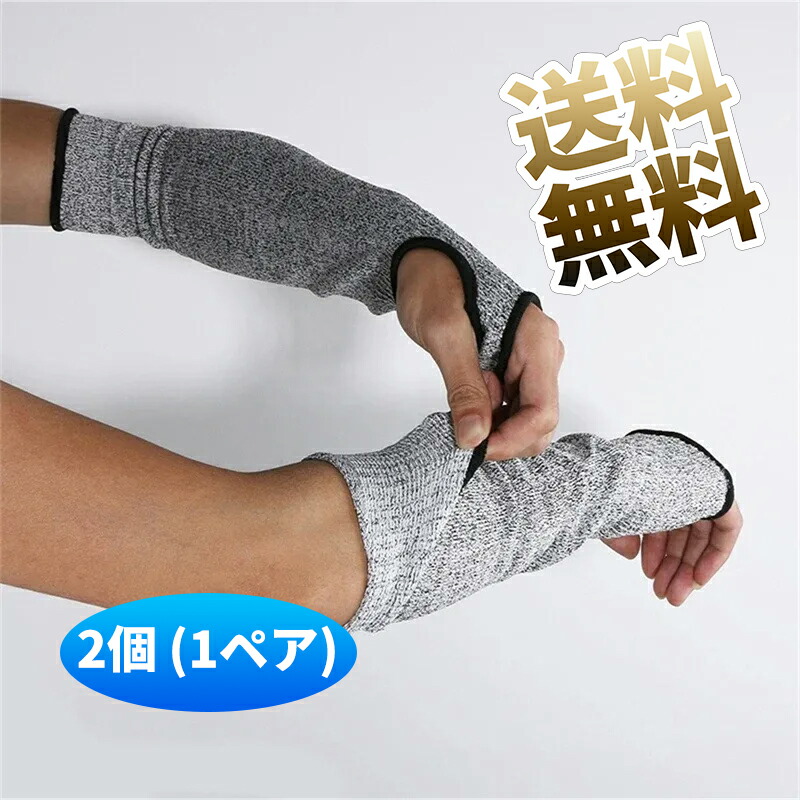 【2個】 防刃アームカバー 腕カバー HPPE ロング 肘まで けが防止 作業用 男女兼用 耐摩耗 安 全防護 防災 工場 園芸