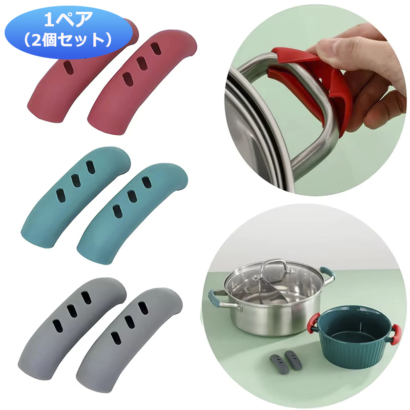 【1ペア(2個セット)】 持ち手用カバー お鍋 シリコンカバー 両手用 約8.2cm×2cm×1cm 【レッド / グリーン / グレー カラー】