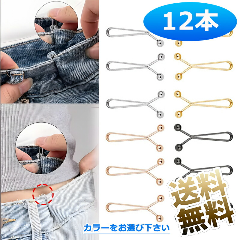 【12個】 ウエスト調整クリップ ウエスト調整ボタン 製品サイズ1.8cm×3.3cm ゴールド ホワイト ガンブラック ローズゴールド 4色ミックス