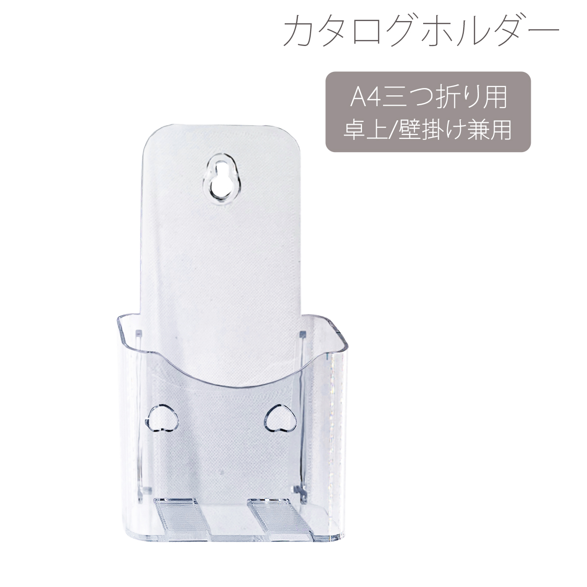 カタログホルダー 卓上 壁掛け兼用 A4 三つ折り用 | パンフレットスタンド チラシ カタログスタンド (会社名・店舗名等の法人名義、団体名は代引きOK)