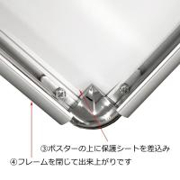 上下左右4辺のフレームがガバっと開くため、ポスターの入れ替えがとっても楽です。