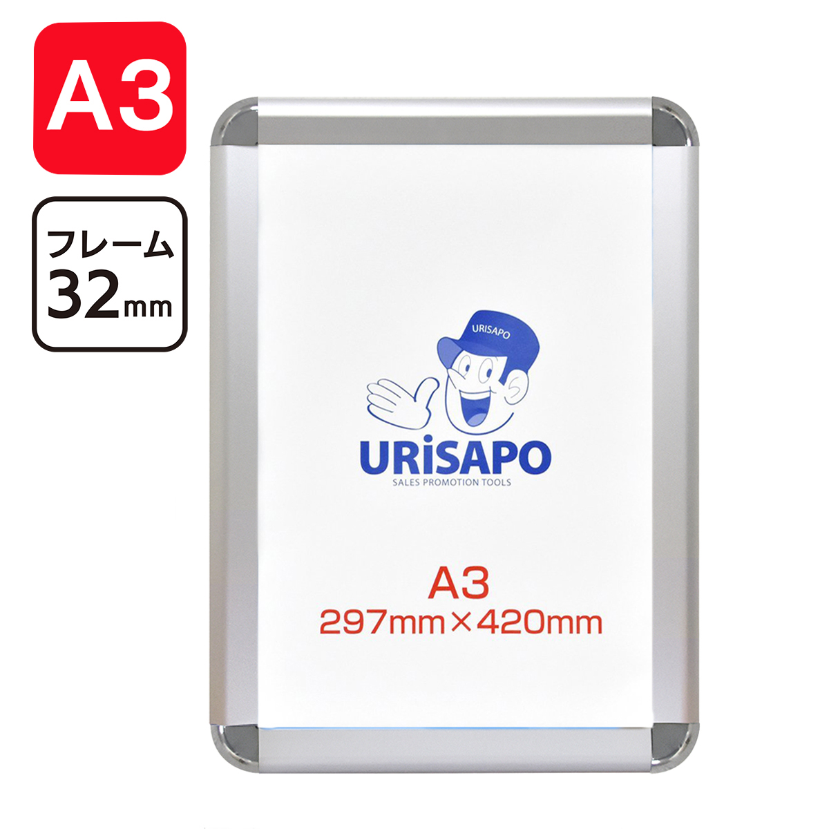 ポスターパネル A3 シルバー フレーム幅32mm | ポスターフレーム 看板 アルミ | 額縁 ディスプレイ 壁付 (会社名・店舗名等の法人名義、団体名は代引きOK)