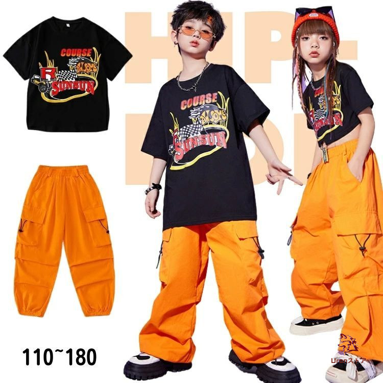 ヒップホップピンク 夏 キッズ ダンス 衣装 オレンジ ファッション 女の子 男の子 子供服 へそ出し服 パンツ 単品販売 韓国 K-POP チアダンス JAZZ アイドル風