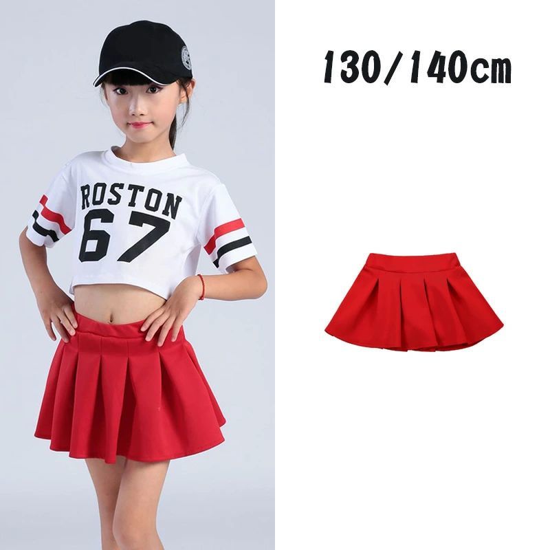短納期 女の子 ダンス衣装 赤 ミニスカート レッド 安全パンツ付き ヒップホップ HIPHOP 練習着 レッスン着 ロック チアリーダー チアダンス チアガール ダンス