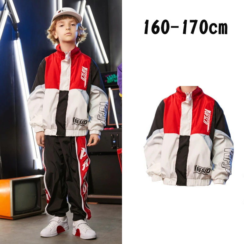 長袖 キッズ ダンス衣装 男の子 女の子 子供服 長袖 ジャケット ジャージ ホワイト レッド ゆったり 練習着 レッスン着 カジュアル トレーニングウエア スポーツ