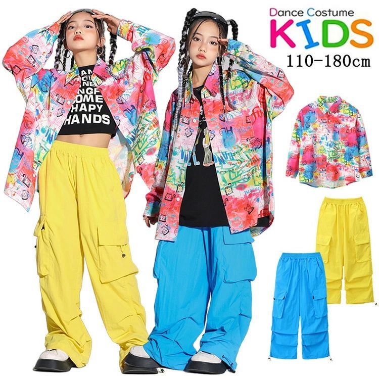 短納期 柄シャツ キッズ ダンス衣装 セットアップ 女の子 アロハシャツ トップス パンツ 子供服 ヒップホップ チアガール ジャズ キッズファッション hiphop K-P