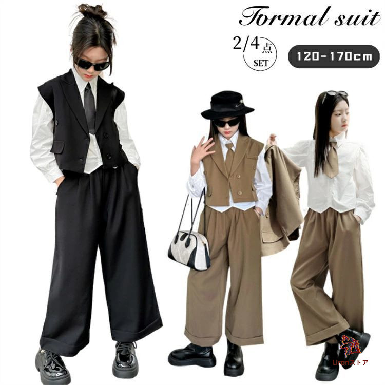 卒業式 スーツ 女の子 小学生 パンツ 150 160 170 フォーマル パンツスーツ 卒服 4点セット 2点セット 子供服 ベスト パンツ シャツ ネクタイ 小学校女子 小学校