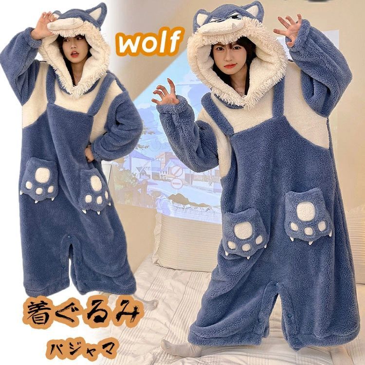 オオカミ 着ぐるみ パジャマ レディース もこもこ パジャマ 可愛い 冬 大人 ルームウェア 高校生 女の子 大人用 着る毛布 動物 厚い オールインワン wolf 韓国