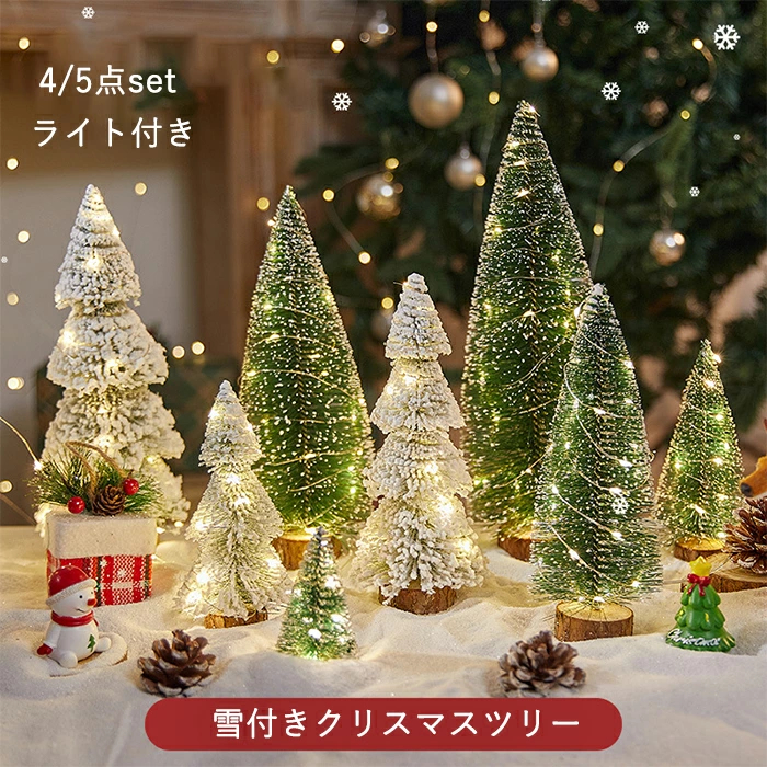 クリスマスツリー 卓上 30/25/20/15/10cm 4点/5点セット ミニツリー 雪付き led 電飾 雰囲気満々 クリスマスツリー雪化粧 クリスマスデコレーション インテリア