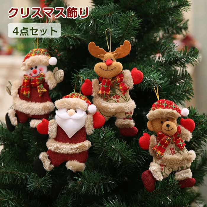 クリスマスオーナメント 4個入り クリスマス飾り ぬいぐるみ クリスマスツリー装飾 サンタ 人形 ペンダント クリスマス雑貨 可愛い サンタクロース 雪だるま ト