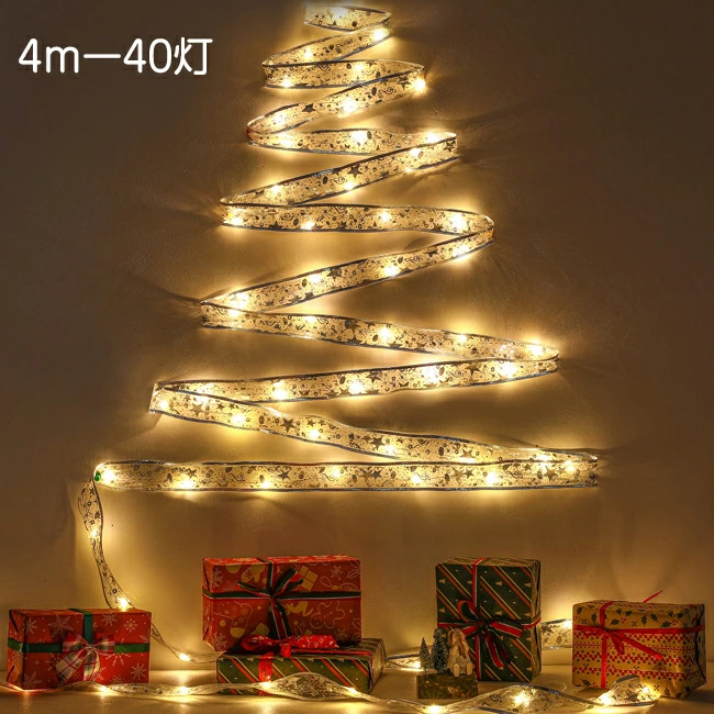 LEDイルミネーション 電池式 クリスマスライト LEDライト クリスマス 飾りツリー クリスマスランプ 40led led電球 4m リボン パーディー 電飾 点灯 クリスマス