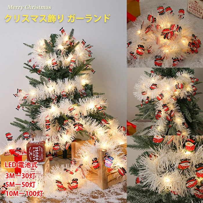LEDイルミネーション 電池式 クリスマスライト LEDライト クリスマス 飾り ツリー LED付き ガーランド DIY オーナメント led電球 パーディー 電飾 クリスマスツ